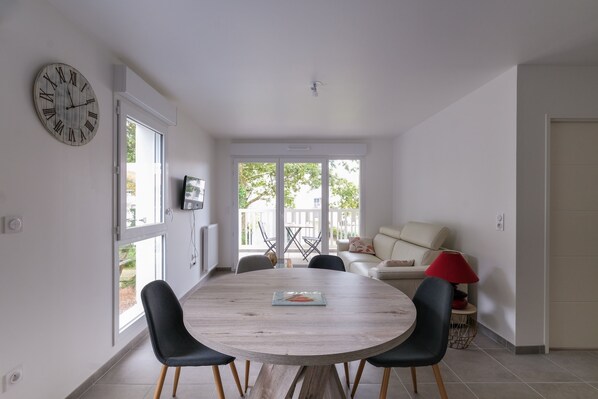 - A 25 m² living room with TV, double sofa bed, dining area...