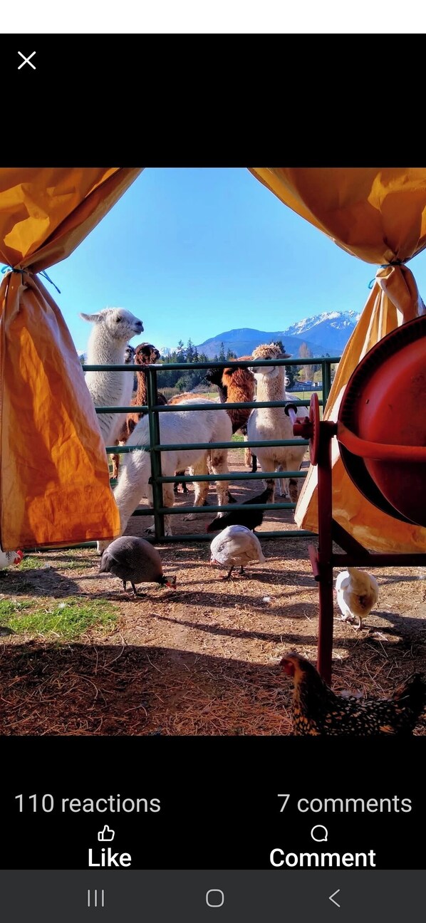 Near Olympic National Park Visitor Center, Enjoy a tent in pasture amongst Llamas Alpacas & Sheep & feeding on our farmstay provides everything you need.