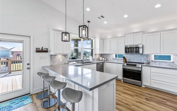 The house has all the amenities you’d expect so you can travel light. It includes all linens, beach towels, games, kitchen utensils, and things you’d expect to be there at your home.