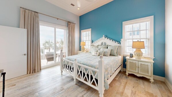 Gulf Front Primary Room King bed and ensuite bathroom