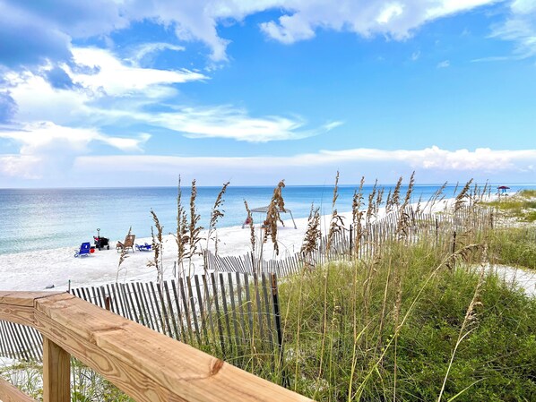 *Large gulf facing, covered deck w/outdoor seating, stainless railing