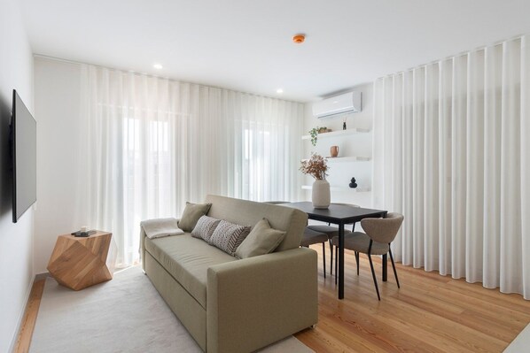 In the heart of Porto, this tastefully decorated 49 m² apartment offers a perfect blend of comfort and convenience. Designed with an open floor plan, unwind on the convertible sofa bed in front of the wide-screen smart TV or prepare delicious meals in the fully equipped kitchen. With essentials like laundry facilities and hotel-quality linens for maximum comfort.