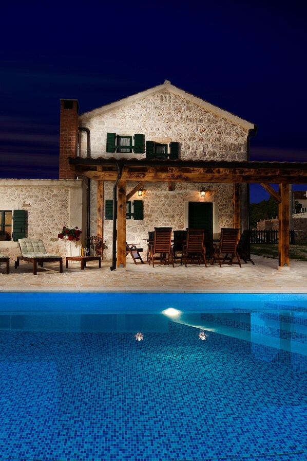 Located in a quiet Slivnica area, Villa Jerolim is an authentic Dalmatian house with rustic charm. Experience the rural tranquility and Mediterranean surroundings of olive trees, fig trees, and herbs while enjoying the outdoor pool or barbecue in the covered dining area.