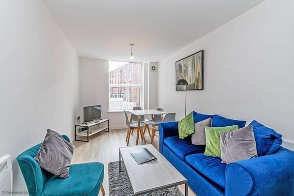 In Preston’s vibrant town centre, Perfect Short Term Apartment Preston With Parking offers stylish living. Accommodating up to four guests, this modern apartment features two king bedrooms with twin options and an open-plan kitchen and living area.