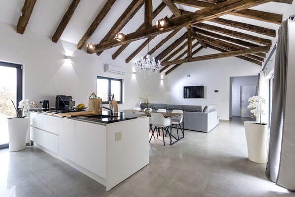 Located in a quiet fishing village, Villa Mala offers a serene retreat with 3 bedrooms and modern luxury decor. Unwind in the sauna or outdoor gym, then lounge by the large heated pool surrounded by olive trees. This villa also features bicycles to explore nearby surroundings.