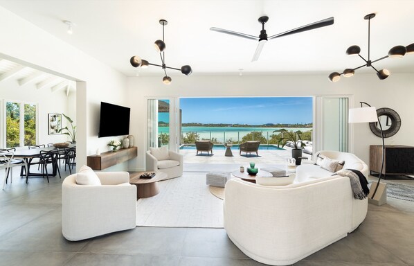 Located in the heart of Providenciales, French Cay Estate is a luxury waterfront villa with panoramic water views and beautiful breezes. This modern retreat features a full chef's kitchen, fire pit area, large screen TV in the living room and primary suite to rival any five-star hotel room.