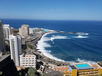 La Carabela, in central Puerto de la Cruz, offers a tranquil rooftop terrace for sunset views. Guests choose between indoor and outdoor pools, browse the library, and easily walk to the popular Lago Martianez Swimming Pools nearby.