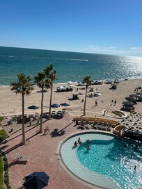 Beachfront condo with fitness centre and Hot tub