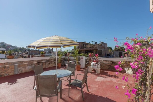 As it is a private apartment, you have a private access and will be able to enjoy all two floors of it. 2nd floor is the apartment and 3rd floor is the terrace, where you can enjoy the sun in the included chairs. BBQ is also a possibility or making a reunion with friends you might have or recently know in Puerto Vallarta.