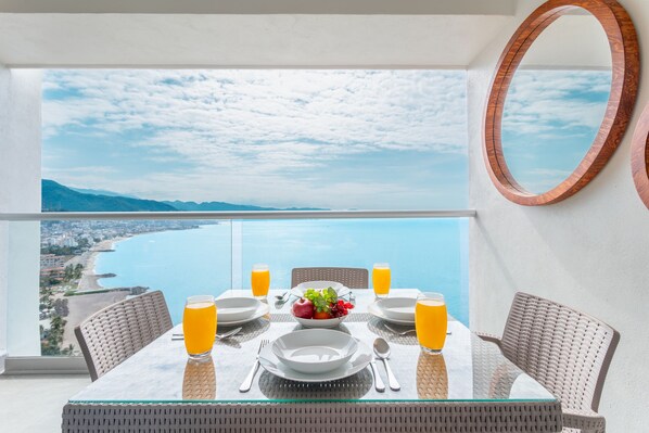Inviting Balcony: Located on the 21st floor, this spacious balcony offers incredibly stunning views of the pool and ocean, enhanced by a refreshing ocean breeze. With comfortable seating for both dining and lounging, it’s the perfect spot to enjoy family meals, sip evening drinks, or unwind while watching the sunset and taking in the breathtaking scenery.
