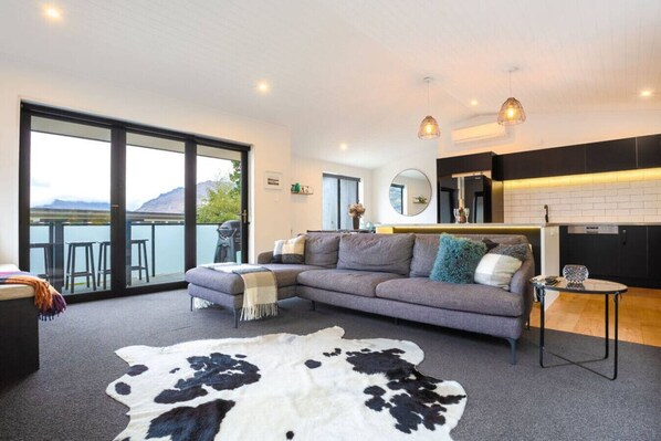 Imagine your dream Queenstown escape: waking to the serene sounds of a creek & bird song from the forest. Sip your morning espresso on the private deck, captivated by panoramic views of the Remarkables & Lake Wakatipu. After an action-packed day, relax in our infrared sauna & cozy up by the gas fireplace with your loved ones. This isn`t just a stay; it`s where unforgettable holiday memories are made, surrounded by nature`s beauty. Flexible bedding setup of either twin singles or superking beds.