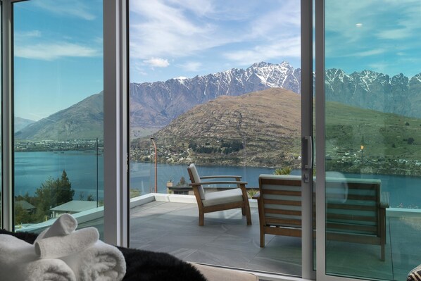 The 'Glass Box' design of the upstairs living area, is an inspired sanctuary where the changing light and weather of the famous Remarkable ranges and Lake Wakatipu with its vast horizon and vista's can be truly experienced.