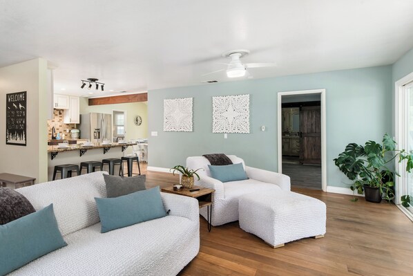 Nestled in the heart of Ramona’s wine country, Mountain Retreat offers 2,000 sq ft of serene, tastefully decorated living space, plus a 700 sq ft detached Game Room & Lounge. With 4 bedrooms, 3 bathrooms, and 8 acres of private land, it’s the ultimate getaway for families, friends, or wedding groups.