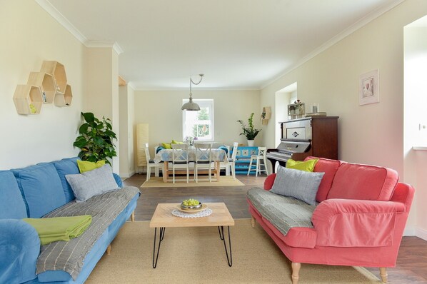 TV, fireplace, books, stereo - Spacious vacation home with a great garden, fireplace, close to the water and in a central location (Rechlin)