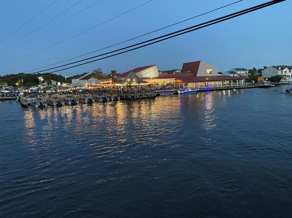 Walk to waterfront dining (Harpoon Hanna’s, Catch 54, Papa Grande’s). Under 1 mile to the beach. Boat & jet‑ski rentals across the street. Close to mini golf, water park, and tax‑free shopping.