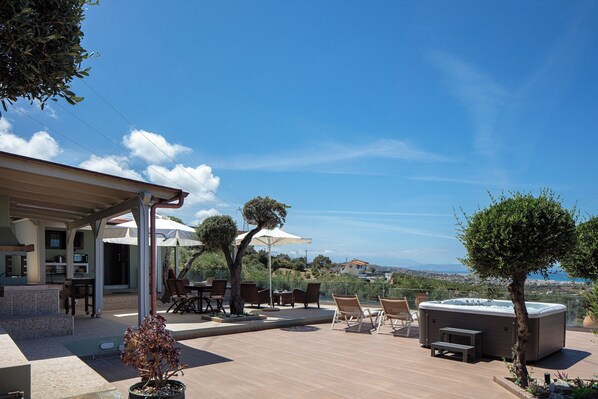Das Haus hat einen herrlichen Außenbereich mit schönem Meerblick. Die Ausstattung ist komplett, es fehlt also an nichts. Es ist gut mit dem Auto erreichbar und trotzdem sehr ruhig. Die Besitzerin kümmert sich und spricht Deutsch. Für einen entspannten Griechenlandurlaub ist es sehr gut geeignet.