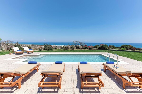 Majestic View Villa is an incredible property for rent with a private swimming pool that combines a magical sea view and relaxation in a great location between Kolymbia and Afantou near all kinds of conveniences and places of interest. Also, the villa is quite close from the cleanest beach of the island, Afantou beach, in an only 5-minute drive. Ideal for families and groups of friends, the villa accommodates up to 7 guest The villa has 4 comfortable bedrooms, 3 double bedded rooms and one with a single bed. All bedrooms are airconditioned and have balconies. There are 2 bathrooms with a shower and one with a bathtub. Majestic View Villa features 2 cozy living rooms with a smart TV. Theres free wifi access throughout the property. There is a fully equipped kitchen suitable for any meal preparation accompanied from the dining areas. Outdoors, theres the magnificent private swimming pool with hydromassage ,sunbeds and an amazing garden. It offers BBQ facilities with outdoor dining area, everything surrounded by the eye pleasing gardens where you can relax and enjoy the perfect summer days of Rhodes. The villa is located within a 5-minute drive from Kolympia village, close to all kinds of conveniences such as supermarkets, restaurants, bars, pharmacies, and car rentals. The villa is quite close from the cleanest beach of the island, Afantou beach, in an only 5-minute drive. The crystal-clear blue water of the sea deepens abruptly as you walk in, making swimming really exciting and enjoyable. The villa is also close to some of the best beaches of the island in close proximity to Afantou beach. You can also find the golf course of the island. Along this beautiful beach visitors can find coffee shops and bars serving cold drinks, as well as restaurants serving fish and traditional food. The villa is also close to the best beach of the island Tsampika only a 13-minute drive. This beach stretches over 1 km and combines soft, golden sand with crystal clear and shallow waters. For those who want to do some sightseeing during their holidays, Close to the villa you can also find 7 springs, or "Epta Piges" as it is commonly called, that is a place of unique natural beauty and offers visitors a unique opportunity to appreciate nature and the wild life of the island. We would like to inform you that the accommodation tax per overnight stay is as follows: