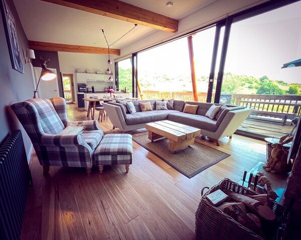 Perched within the Yorkshire Dales forest, Lodge 11 offers a serene retreat with a spacious deck and glass wall frontage that brings in natural light and breathtaking views of Swaledale. With an open-plan living area, state-of-the-art kitchen, wood-burning fireplace, and luxurious en-suite bedrooms with bespoke furnishings.