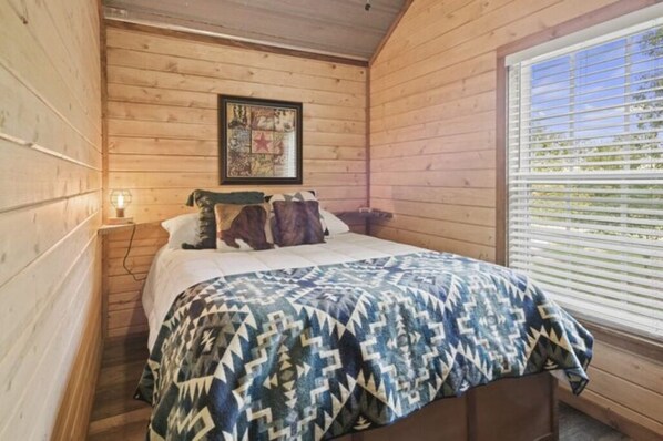 New Tiny Cabin, full kitchen, free Internet, outdoor fire Pit, 1/2 mile from lake, private back deck
