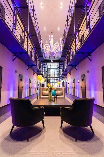 Het Arresthuis in central Roermond offers a refined retreat with thoughtful amenities. Guests start their day with breakfast at Damianz, then explore nearby markets. Upon return, the lobby's fireplace, garden terrace, and sauna provide perfect relaxation spots.