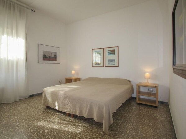 3-room apartment 90 m2, on the upper ground floor. Spacious, partly renovated in 2020, practical furnishings: large entrance hall. Living/dining room with 1 double sofabed, digital TV and flat screen. 1 double bedroom. 1 room with 2 beds and 1 sofabed. Kitchenette (oven, dishwasher, 4 induction hot plates, microwave, freezer). 2 showers/bidet/WC. Electric heating, air-conditioning. Facilities: washing machine, safe, iron, hair dryer. Internet (WiFi, free). Please note: non-smokers only. Maximum 1 small pet/ dog allowed. The beds in the double room can be separated if requested in advance. Check in after 21.00h extra 50 euro. IT058091C2SJRK8PR8