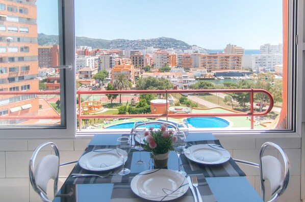 1. Apartment with incredible views of the Bay of Roses with community pool.