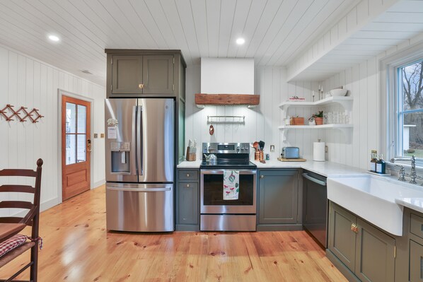 This beautifully restored 1700s farmhouse is a perfect mix of history and modern comfort. The house is thoughtfully designed with both character and convenience in mind. The setting is beautiful - plenty of outdoor spots to take in the views. We saw deer and turkeys every morning! Whether you're looking for privacy or a serene escape, this property is an excellent choice. Highly recommend!