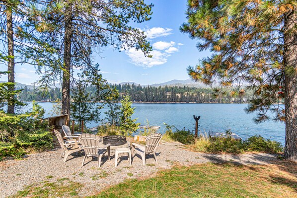 When it’s time to head out, there are lots of hiking trails nearby, and Sandpoint is an easy drive or boat ride away. If you're visiting in the winter, make use of the convenient storage area in the garage for your skis and snowboards. In the evening, turn on the electric fireplaces for added ambiance and grab one of the many puzzles or games out of the guest room closet to play together. More entertainment options include three TVs, a DVD player and library, as well as a Playstation 2 and Super Nintendo. Spend time in the yard with one of the many outdoor games available, including ring toss, Yardzee, badminton, and lawn darts. End the night gathered around the fire pit by the water, trading stories about the day – and making plans for another great vacation day tomorrow.