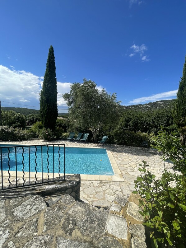 Outdoor pool - House +2 gîtes, 15 persons, near Ardèche, swiming pool. Cèze river beach at 800m (SAINT ANDRE DE ROQUEPERTUIS)