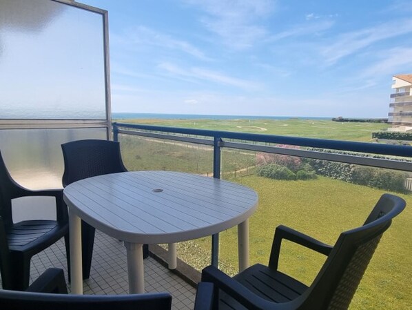 Balcony, patio furniture and 2 sun loungers - west-facing, 1.8 km from shops - close to the Thalasso spa and golf course
