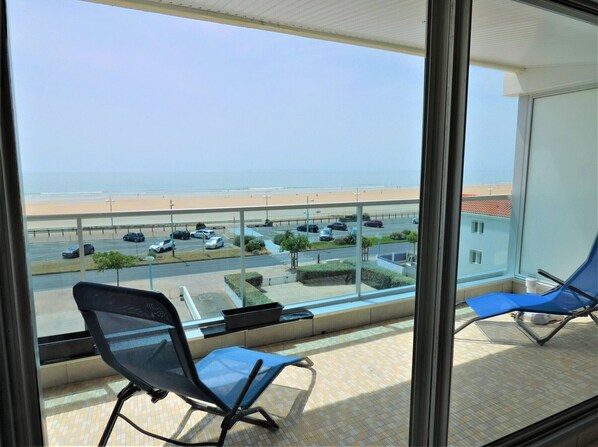 - 1 large balcony (12m2) : small balcony table and chairs facing the ocean