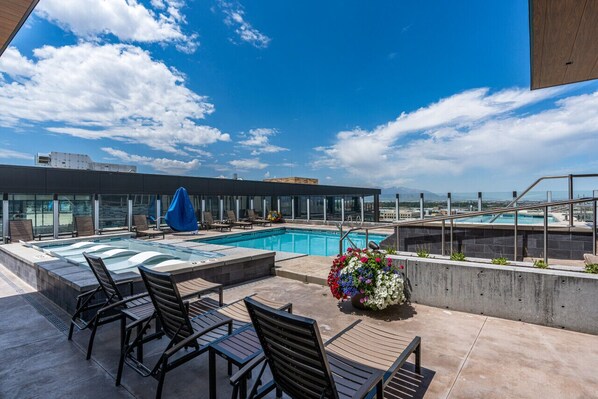 ☀ Heated rooftop Pool and Hot Tub with 360 degree views of downtown and the mountains! Open year-round!