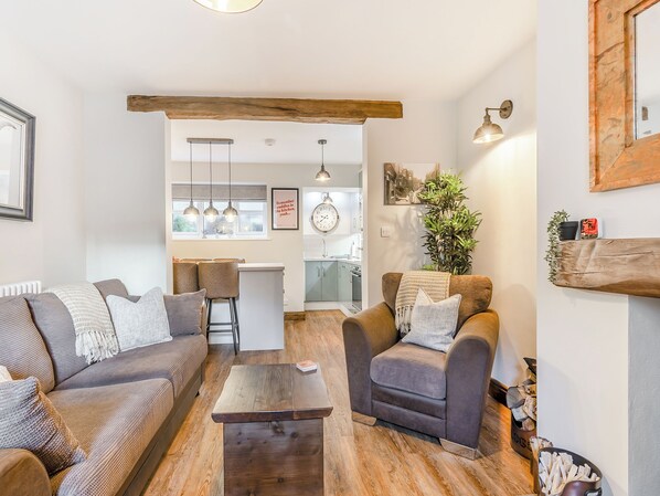 Bedroom 3: Zip And Link 2 x Single (3ft) Beds. Gas central heating, electricity, bed linen, towels and Wi-Fi included. Initial fuel for wood burner included. Travel cot. Welcome pack. Front garden (shared with other properties on-site). Private parking for 1 car. No smoking. Please note: Family and holiday makers only.. Brought to life by a dedicated father-and-son team, the cottage has been completely transformed from its historic roots into a stylish, welcoming holiday home. Upon entering, you’ll step into a thoughtfully designed open-plan living area featuring a stylish kitchen with a breakfast bar. The lounge area is perfect for relaxation, furnished with plush sofas set around a wood-burning stove—just the thing for unwinding after a day of exploration. Upstairs, the first-floor hosts two double bedrooms, each with built-in wardrobes and TVs, as well as a sleek shower room with a rainforest shower. On the top floor, you’ll find the versatile zip-and-link bedroom, which can be configured as twin beds or a superking.