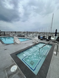 Yes, this property has an outdoor pool. Pool access is from 7:00 AM to 10:00 PM.