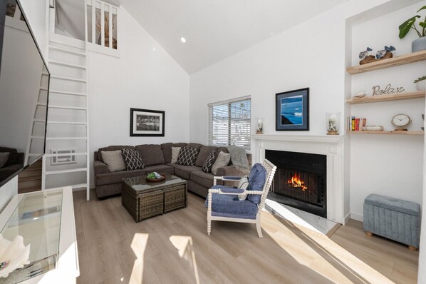 This spacious 2 bedroom 2 bath + Loft is minutes away from the beach and bay. 1 block off of Garnet Avenue (The main strip in Pacific Beach). Many great restaurants/bars within walking distance. The newly remodeled kitchen is equipped with refrigerator, stove top/oven, microwave, coffee maker + everything you could need to cook a meal at home. Private gas BBQ on balcony/deck. Comfortable & Clean beds (extra-long King, Queen, and x2 twins). There is parking for 1 large car and free laundry on site! Central to all San Diego has to offer.