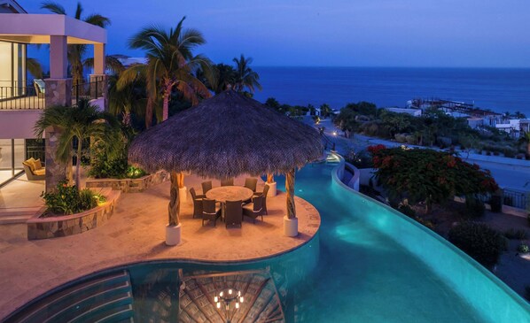 Escape to Casa de Sueños, a luxurious beach getaway with breathtaking ocean views in San José del Cabo. Unwind by the infinity pool or hot tub, enjoy palapa dining and barbecuing seaside, then gather around the firepit lounge at sundown. Inside this stunning villa are gourmet kitchen amenities and 4 master suites.