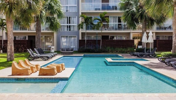 Unwind at Vibe Residence, a modern retreat with a private yard and access to the residential pool and jacuzzi. Enjoy amenities like WiFi, air conditioning, smart TV, hot water washer/dryer in every room. The gym is right in front of reception with exclusive perks for guests.