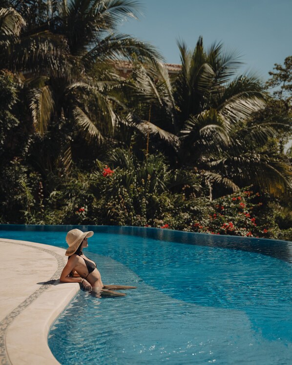 Travelers breathe in salty air while soaking up sunshine at a private beach, or find tranquility at the serene poolside oasis at this adults-only hotel.