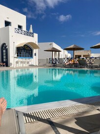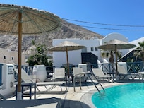The Sunshine Hotel on Kamari Beach's black volcanic sands offers crystal-clear waters for scuba diving or beach days. Guests enjoy a breakfast buffet, beach amenities like sun loungers and umbrellas, in-room WiFi, and a welcoming café.