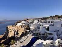 Perched near Athinios Port, Volcano View Hotel Santorini is a tranquil retreat that offers an unforgettable experience. With its poolside bar, spa treatments like manicures and massages, 3 outdoor pools with sun loungers, Caldera restaurant serving international cuisine and ocean views plus shopping on site guests will unwind in style. Guests rave about the helpful staff and prime location.