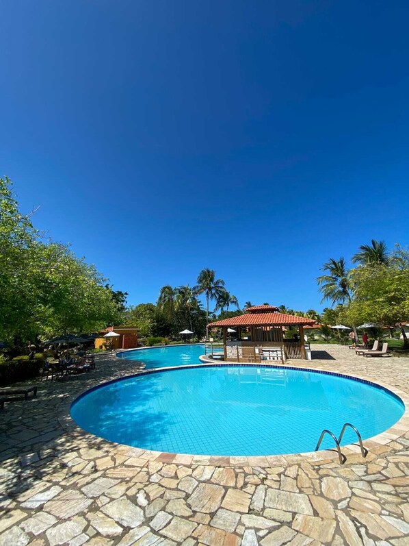 Beachfront relaxation awaits with ocean views and sunny skies at this coastal retreat, where delicious meals and poolside lounging create a perfect seaside escape