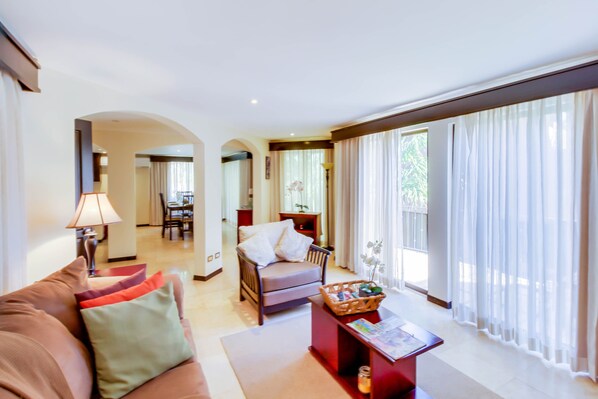 These two condos in Playas del Coco provide your group with plenty of room and privacy. Enjoy two separate, fully equipped living quarters and an on-site pool. You'll also have private patios.