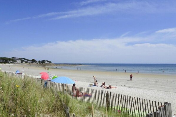 Classic Breton holiday home on a 1,500 m² enclosed garden property. The property is located in the small hamlet of Trevenaste above Le Rohaliguen beach (500m). A comfortable living area with a cozy fireplace corner, four bedrooms and 2 bathrooms offer enough space for a large family. Children and your four-legged friends are very welcome here! The popular seaside resort of St. Gildas de Rhuys on the open Atlantic and the village of Sarzeau, which faces the picturesque Gulf of Morbihan, are the same distance and can be reached in a few minutes by bike or car. Enjoy the mild climate and the Mediterranean vegetation. You have the choice between the white sandy beaches and the refreshing waves of the open Atlantic and the shallow waters and the green natural landscape of the Gulf of Morbihan. Activities nearby : Very close by is the 1000-year-old abbey church in St. Gildas-de-Rhuys (7 km), in front of which the large weekly market is open on Sundays, as well as the Suscinio Castle (6 km) surrounded by a picturesque swamp area. Other attractive excursion destinations are: the regional capital of Vannes (23 km), for the kids the Branféré animal park in Guerno (approx. 40 km), and a little further the well-known seaside resort of Carnac, which is also known for its impressive menhirs and dolmens.