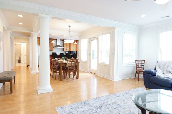 This amazing house in Saugatuck offers 3 cozy bedrooms with 2 king beds and 1 queen bed, perfect for a nice getaway with friends or family. The king bedrooms both have their own private balconies. Enjoy the spacious living room with room to put 2 additional air mattresses in for extra guests. There is a laundry room if you wish to use it. The dining room is spacious and leads outside to a large balcony that overlooks the street and lake views. The full kitchen is a great spot to catch up with friends and cook some great meals as well.