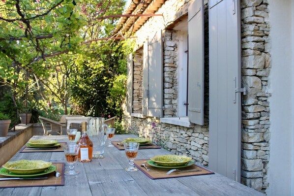 Outdoor dining - Maison de Campagne au Pied des Monts de Vaucluse et du Luberon (Saumane-de-Vaucluse)
