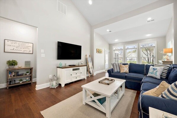 Large townhome in the popular, amenity filled Bayside resort community. This home offers three bedrooms, two full-bathrooms, one half-bathroom, an open living area and several exterior living spaces. The living area features the nicely furnished living room with vaulted ceilings, dining room, fully-equipped kitchen, sitting area and a half-bathroom. There is a large screened porch off the living area with a nice water and fountain view. This is a great place to relax and unwind after a long day at the beach. The first bedroom is located on the first floor and features a king-sized bed, television and an ensuite full-bathroom. The second and third bedrooms are located on the second floor. The second bedroom features a king-sized bed and the third bedroom features a twin over full bunk-bed, single bed and a double bed. There is a loft area on the second floor that provides another living and sleeping area with a sleep-sofa and television. The second full-bathroom is centrally located on the second floor and easily accessible throughout. Bayside offers an unrivaled amenity package that includes indoor and outdoor pools, golf tennis, pickle ball, volleyball and basketball courts, two fitness centers, dog parks, bar and restaurant, beach shuttle, summer concerts and more. The beach and all of the fun that Fenwick Island and Ocean City have to offer are a short drive away. Come make some memories at the beach with Coastal Life Vacations. Linen and towel package included with reservation. Management fee includes Damage Waiver for $1000 in accidental damage coverage.