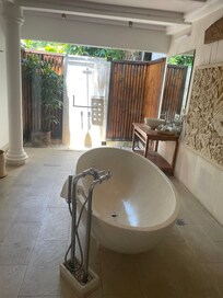 This Seminyak villa provides complimentary wireless Internet access. LCD televisions come with cable channels. Additionally, rooms include complimentary bottles of water and coffee/tea makers. A nightly turndown service is provided and housekeeping is offered on a daily basis. Amenities available on request include an iron/ironing board.