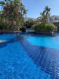 Cons: the game room (whatever they called it) had a decent selection of games especially for kids but when the demand was low (I.e. Morning, they'd randomly shut off games and would say they're broken only to be turned back on in a couple of hours), the game room was also in big need for some repairs and looked outright disgusting and prison-y around the kids music cars (not sure what they're called), the hairdryer was the hardest hairdryer to use amongst all (I mean all) hotels/resorts that I've been at and was stuck in a drawer (wth). Also be aware to not being taken advantage of the taxi service that the hotel calls (although not directly hotel's fault, I'd expect more supervision by the hotel), when called they sent us 2 taxis and when advised that we needed one were treated disrespectfully by the taxi drivers.