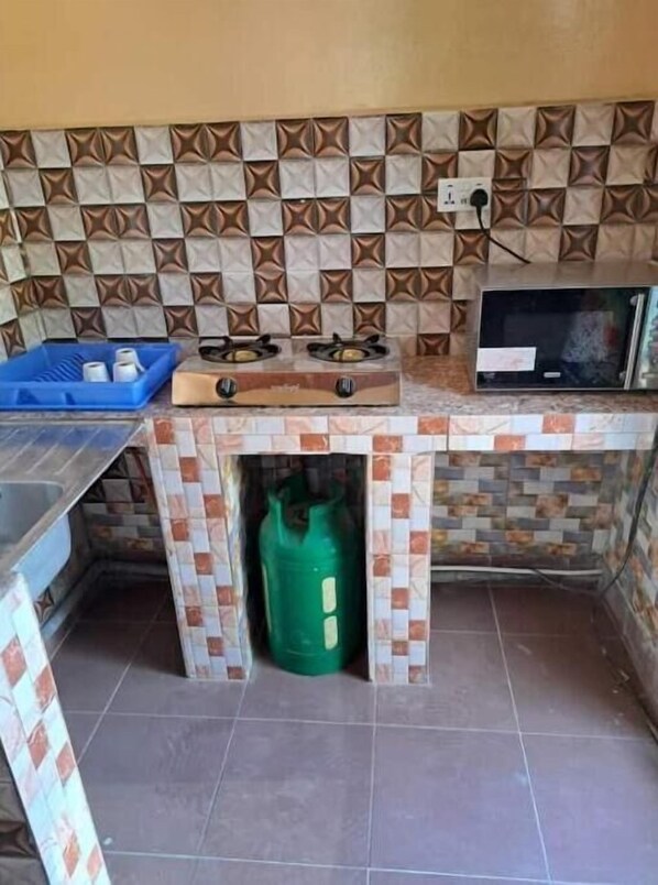 fully furnished airconditioned one-bedroom self-catering apartment with king-size bed, in a secured residential area located within 20 mins walking distance to beach. The apartment comes with an electric water heater, a secured outdoor kitchen and dining facilitate and free WIFI. The rates includes water and electricity.