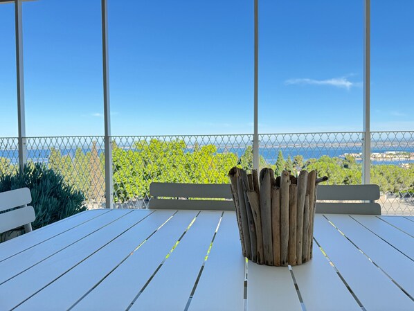 The terrace is furnished with beautiful, high-quality furniture so you can enjoy your meals while enjoying the view and magnificent sunsets.